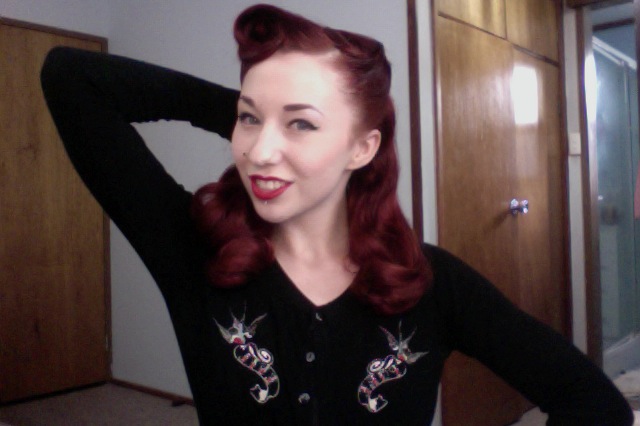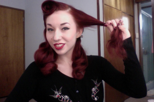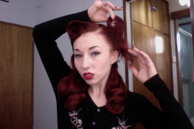 Today I’m posting this blog about one the most popular requests for vintage styling tutorials that I receive, how to do a victory roll! I first discovered victory rolls when I was about 14 years old, before I’d made the discovery of what pinup actually was, I was experiment with hair curlers, and thought to myself “gee, wouldn’t it be cool if you could style your hair like this, but not have the curler there?”, I also didn’t know YouTube was a fantastic source for different tutorials so I just continued to experiment till I developed my own unique way of styling victory rolls. Almost 7 years later I’ve become quite a victory roll veteran, and love experimenting with new ways of styling with this basic method.