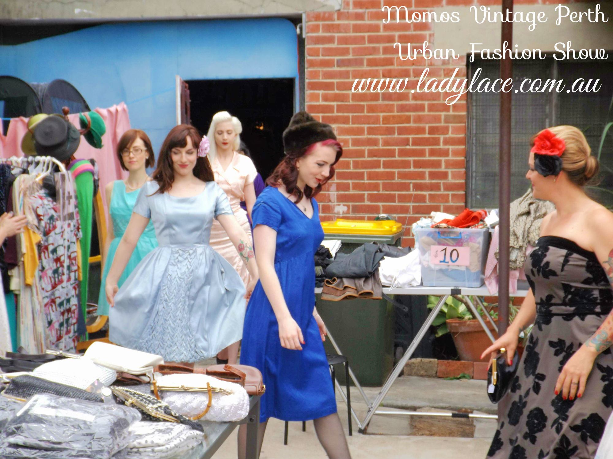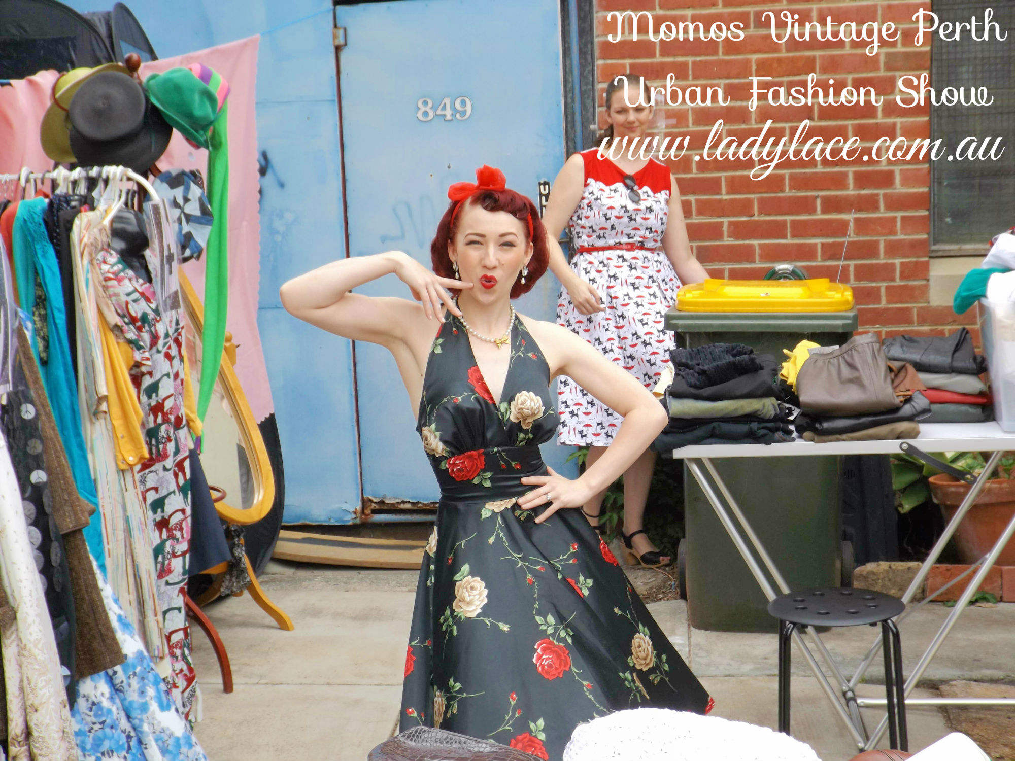 Today at the the fabulous vintage boutique MoMos Vintage they had an incredible carpark sale with so many fabulous items heavily reduced! The day also included a pinup urban fashion show featuring just a few beautiful members of The Perth Pinup Community, and a pinup performance by yours truly.