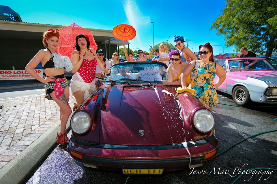 Yesterday I volunteered for the Burly Girly Car Wash, a regular event in which the burlesque community of Perth come together to raise funds for a charity, with Radio Lollipop being the chosen charity for this car wash taking place at Fast Eddy’s Morley. So many wonderful ladies and gentlemen donated their time, and so many people came to have their cars washed.