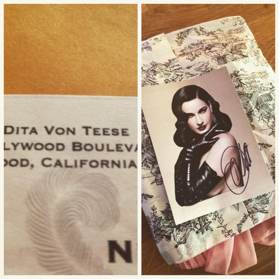 A few weeks ago I purchased a beautiful vintage 1950’s blouse from the modern queen of vintage Dita Von Teese, and I was thrilled only a few days ago that it arrived, its one of the most beautiful pieces! It features a sheer material with a beautiful big bow, and poofy sleeves.